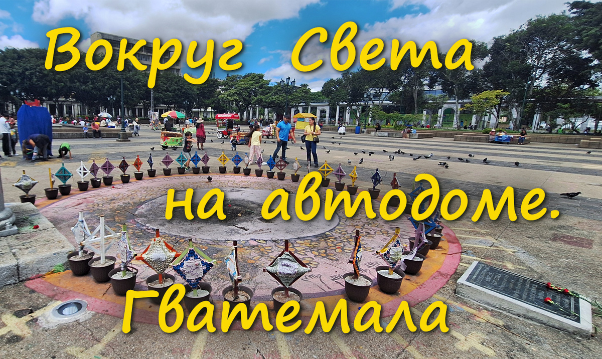Здравствуйте дорогие наши читатели! Мы – семья авто путешественников вокруг Света; а Гватемале. Предыдущую статью можно прочитать здесь: Часть 102 В столице Гватемалы - Гватемале решили заночевать на самой центральной площади. Нас сразу же начали окружать бездомные, расстилая свои одеяла, взбивая подушки; кто-то подошел знакомиться. Стражи порядка уверовала: здесь безопасно, да и полицейская машина стояла прямо перед нами. Какая же благодать - находиться в горах на высоте 1500 метров, когда ночная прохлада окутывает и ты не ждешь, лежа в кровати малейшего дуновения ветерка из открытого окна, когда же он холодком пробежит по мокрому в поту телу. Ну это уже выглядит как столица, наконец! Есть и центральная площадь, окруженная величественной архитектурой. На площади место для традиционных ритуальных костров Майя. Каждый час грохочет пушка, стреляя в воздух и пугая незнающих об этом приезжих. Пешеходные улочки с торговцами и музыкантами расползаются от площади в разные стороны. Город днем