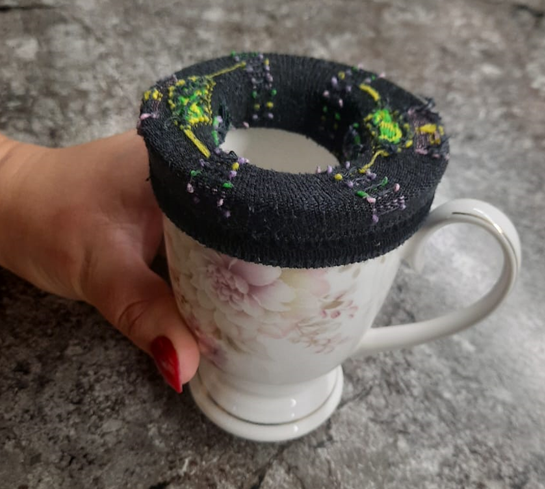 Если края чашки горячие и некомфортны человеку, то ободок чашки можно проложить салфеткой или одеть от него резинку от носочков или перчаток. Снаружи горячую чашку можно придерживать полотенцем.