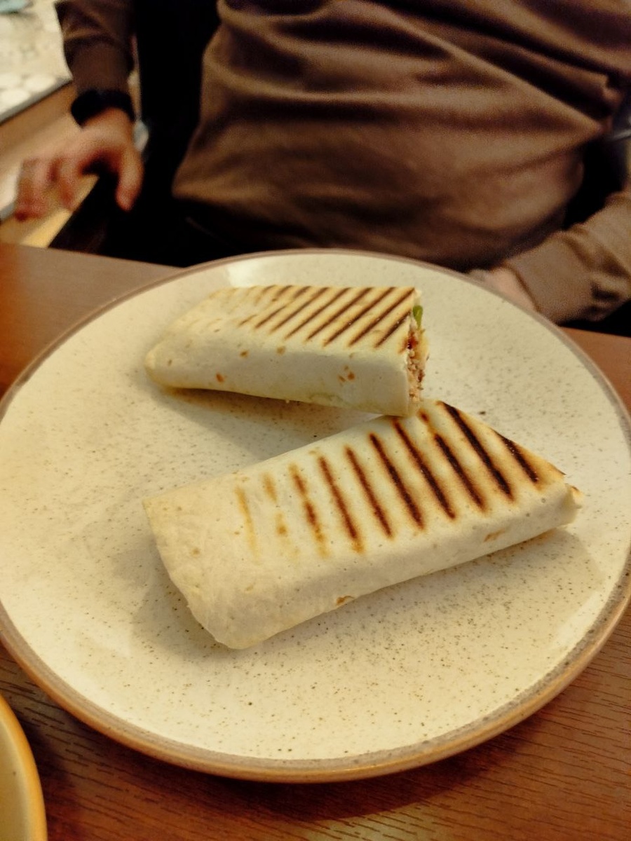 Ролл «Цезарь», ролл «Ветчина и яйцо» и греческий салат, а еще американо ☕ и латте «Фисташка»☕