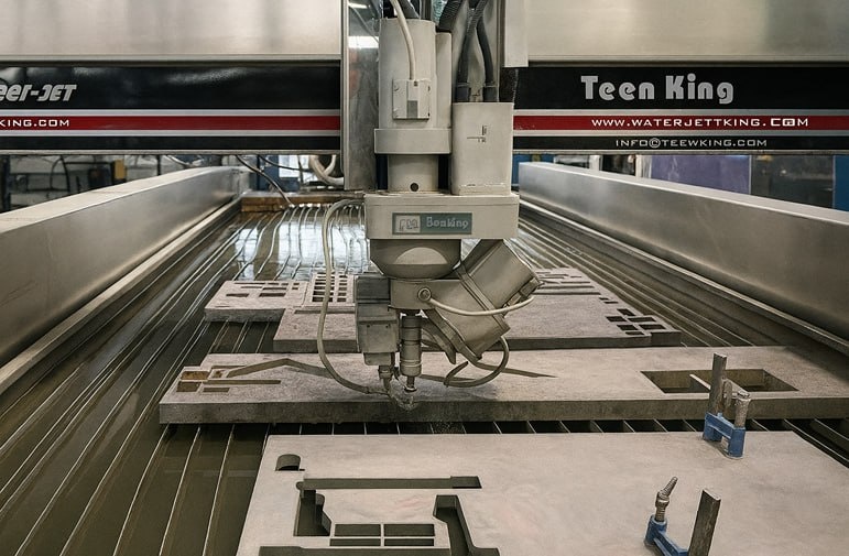 На производстве точность и универсальность перестают быть преимуществом — они становятся нормой. Особенно когда речь идёт о сложной геометрии, угловых фасках, материалах с высокой чувствительностью к температуре. В таких задачах стандартные методы обработки перестают работать. Здесь на сцену выходит гидроабразивная резка. Вместо нагрева — струя воды под давлением до 4000 бар. Вместо температурной деформации — чистый срез с шероховатостью до Ra 5 мкм. Эта технология позволяет обрабатывать металл, стекло, камень, композиты и технические пластики — без микротрещин, прижогов и доработки. На судостроительных и машиностроительных предприятиях резка под углом — отдельная головная боль. Угол 45°? Забыли. Конусная фаска на деталях длиной 3+ метров? «Такое не режем». Проблема в том, что термические методы не справляются, а механические — не дают нужной точности. Поэтому запуск установки с 5-осевым управлением — это не про модернизацию, а про удержание конкурентной позиции. Гидроабразивная