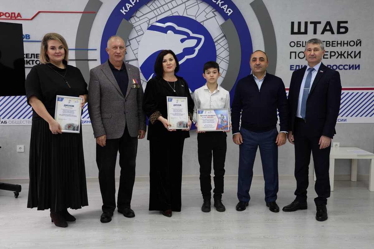 В Штабе общественной поддержки «Единой России» прошло награждение призеров всероссийского конкурса школьных музеев «Знать, чтобы помнить». В этом году он проходил в рамках Года 80-летия Великой Победы и был посвящен сохранению памяти об участниках Великой Отечественной войны, блокадниках, узниках концлагерей, тружениках тыла – членов семей учащихся, и изучению ими жизни и подвигов своих героических предков. Всего в конкурсе приняли участие школьные музеи из 82 регионов страны, и в списке федеральных лауреатов – представители нашей республики. Второе место в номинации «Лучший сельский музей» занял музей «История аула» школы а. Старо-Кувинск им. академика Н. Б. Экба. Он получил 300 тысяч рублей. Третье место среди городских школьных музеев экспертная комиссия присудила музею Боевой и Трудовой Славы Лицея №1 г. Усть-Джегута им. А. М Тебуева, который получил 200 тысяч рублей. Дипломы и денежные сертификаты директорам общеобразовательных организаций вручили руководитель исполкома региональн