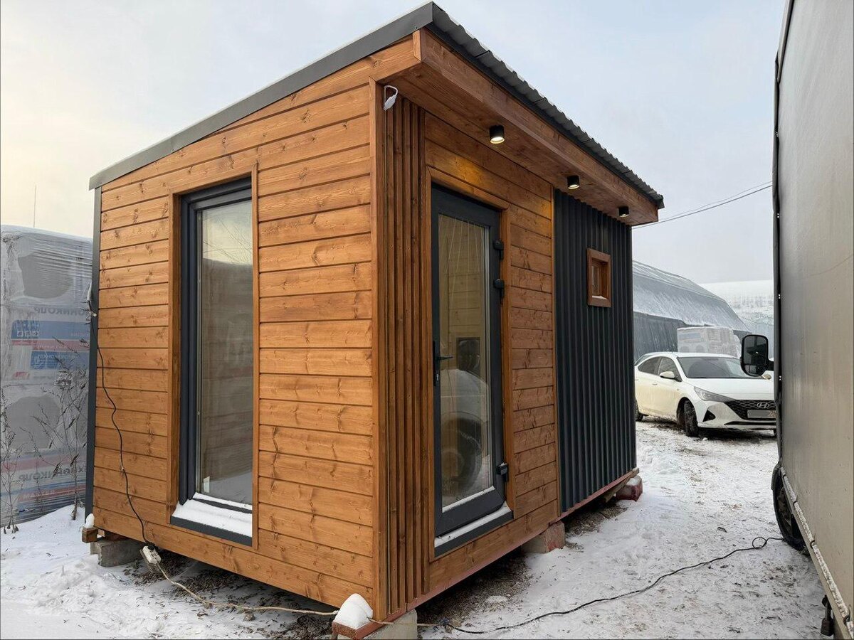 - готовая, продуманная, ваша! 🧱 ВНЕШНЯЯ ОТДЕЛКА И СВЕТ ✔️ Обшивка бани - профлист С20 с порошковой окраской + имитация бруса (сорт АВ) ✔️ Точечное наружное освещение - 3 точки ✔️ Дизайнерская подсветка наружных реек ✔️ Панорамная входная дверь ✔️ Панорамное окно в комнате отдыха ✔️ Фундамент - блоки 🛋 КОМНАТА ОТДЫХА ✔️ Отделка стен - имитация бруса (сосна, сорт АВ) ✔️ Напольное покрытие - линолеум ✔️ Электрика под ключ: - медный кабель ГОСТ - розетки 3×2,5 - освещение 2×1,5 Пространство светлое, тёплое и удобное для отдыха после парилки. 🔥 ПАРИЛКА ✔️ Стены и потолок - липа сорта ЭКСТРА ✔️ Пол - лиственница, обработана на станке ✔️ Полок - липа, сорт ЭКСТРА ✔️ Светодиодная подсветка полока - термо- и влагостойкая - класс защиты IP68 ✔️ Дежурное освещение - 1 точка ✔️ Дверь в парилку - стеклянная матовая, цвет бронза ✔️ Печь Ермак 12 - надёжная, проверенная годами 💰СТОИМОСТЬ - 650 000₽ ❗️В наличии всего 1 экземпляр! ___ СТРОИМ, КАК ДЛЯ СЕБЯ 📩 Получите полный каталог домов с
