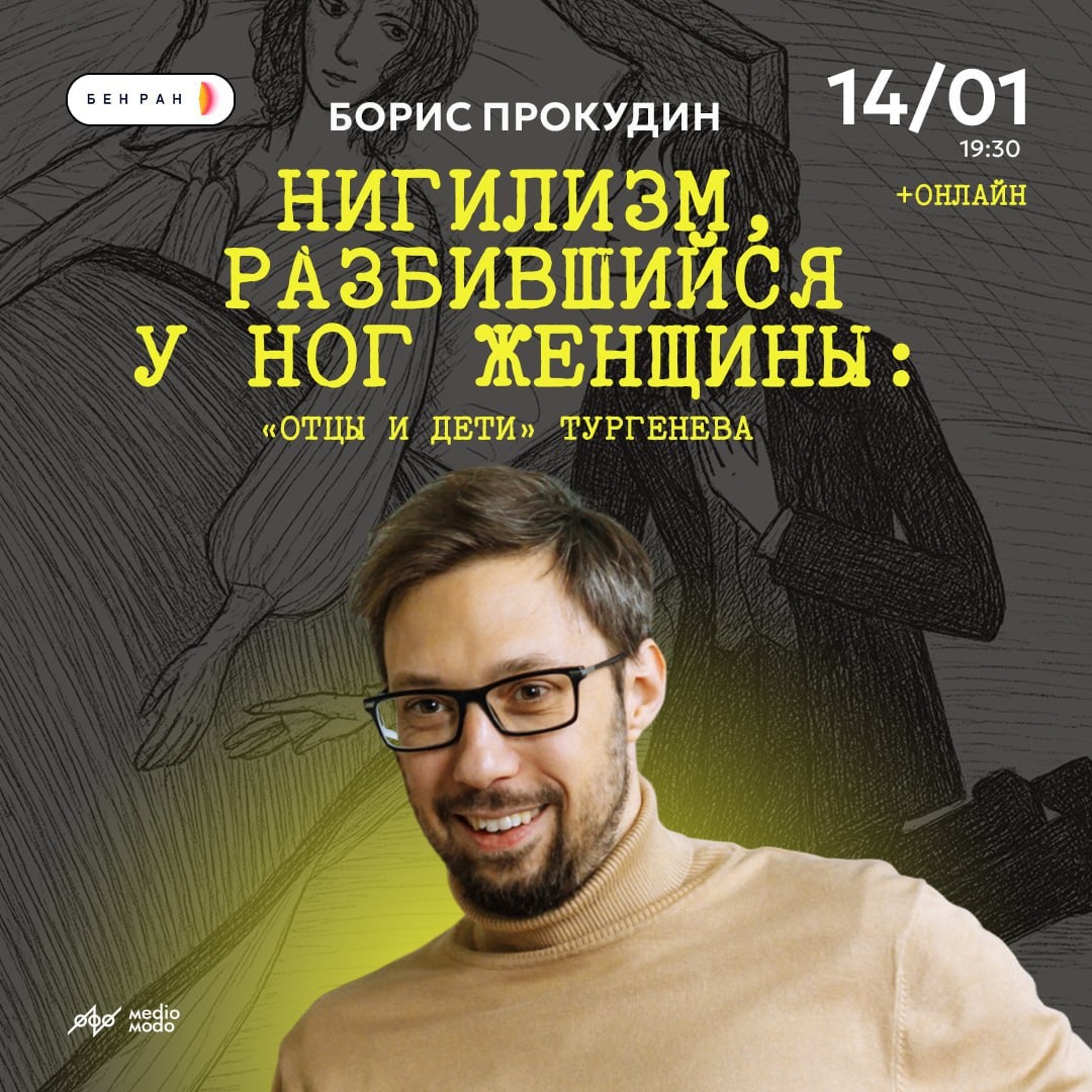 ! Как здорово, что вы еще здесь и ходите на лекции. А я приглашаю вас на третью — 14 января! Она будет посвящена Базарову! Мы поговорим о том, как появился этот нигилист в русской литературе, где до него правили одни только болтуны — лишние люди. Вспомним, как Базаров был уверен в себе, а потом влюбился в Анну Одинцову и «рассыпался». Как весь его нигилизм разбился у ног капризной женщины. Поговорим, как роман «Отцы и дети» привел к «расколу в нигилистах». И даже впервые породил спор о том, что такое истинный и ложный феминизм. Билеты: https://mediomodo.ru/prokudin-msk