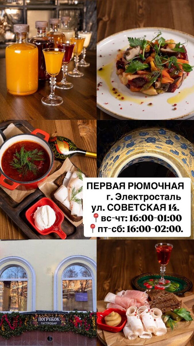 Электросталь🪆 Это место, где ты сможешь окунуться в атмосферу русской культуры и традиций. Здесь каждый найдёт что-то своё: от уютных посиделок с друзьями до шумных вечеринок.💃 У нас вы сможете попробовать наши фирменные настойки и блюда родом из детства. Советская 14 📍вс-чт: 16:00-01:00 📍пт-сб: 16:00-02:00 ☎️ 8 (999) 990-40-54