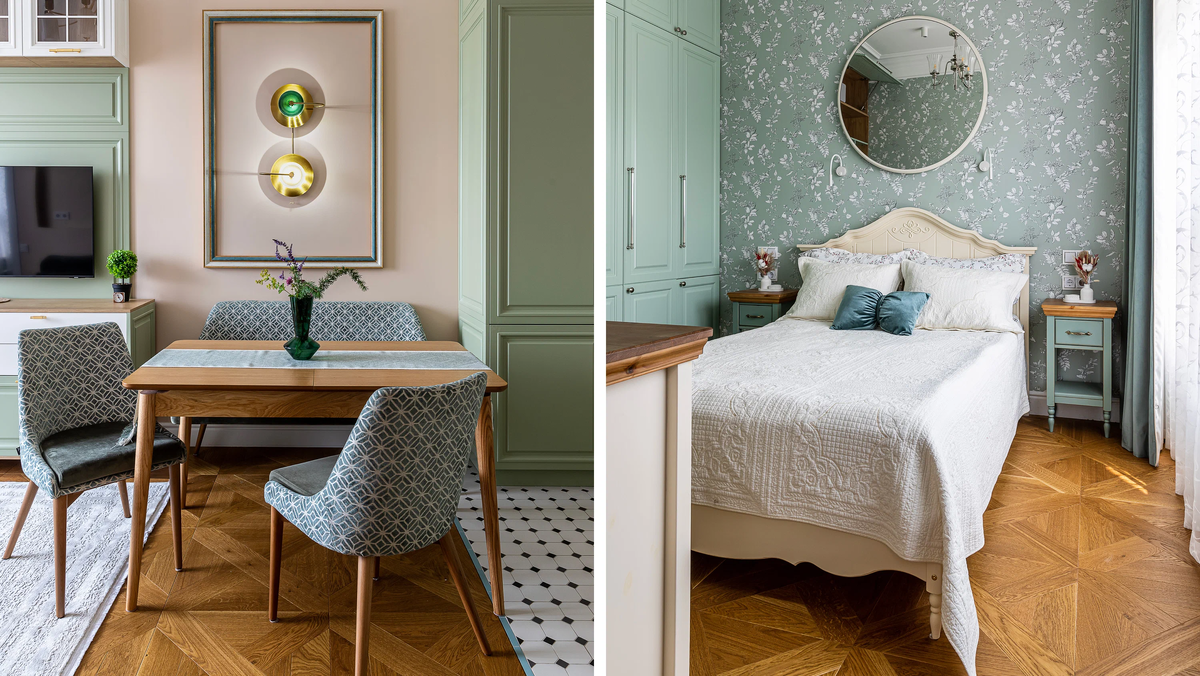 Эта квартира площадью 44,4 кв. м досталась мне в работу в феврале 2024 года. Задача стояла непростая: создать классический интерьер, где будет уютно хозяйке и её гостящим время от времени внукам. Заказчица мечтала о доме, который окружит детей красотой с первых шагов. Она верила, что это станет залогом их будущего вкуса. Поэтому в качестве основного стиля мы выбрали классику, но решили разбавить её элементами прованса и шинуазри.