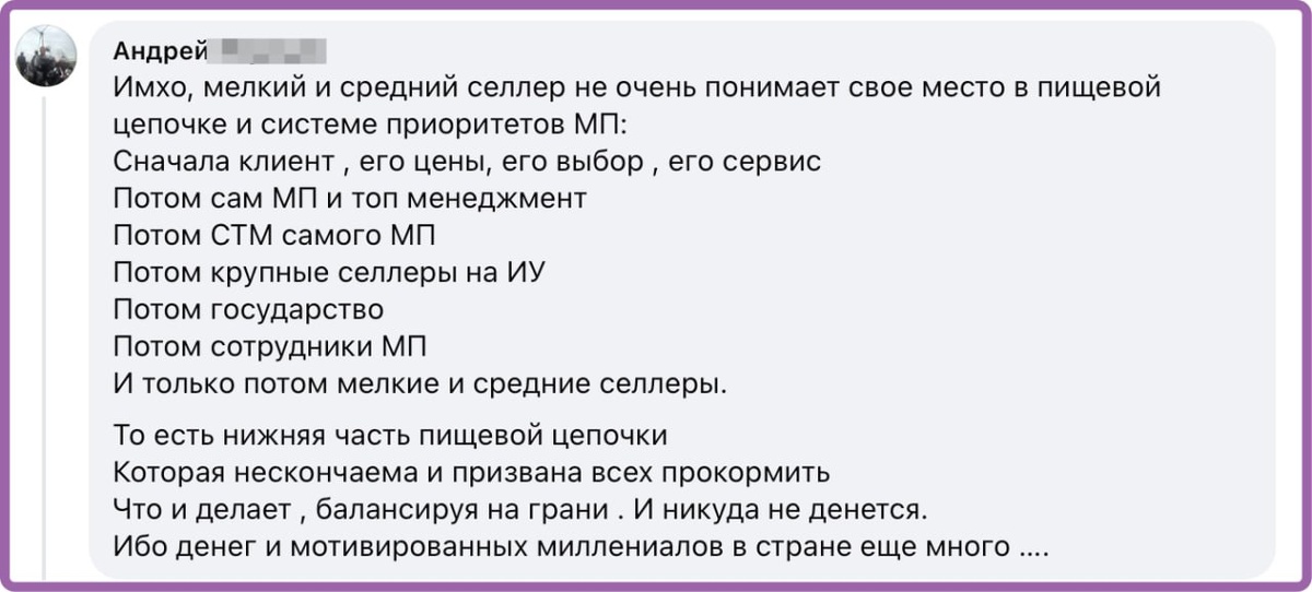 Мелкому селлеру на МП посвящается. На 1100% согласен. К сожалению - они расходный материал, планктон для китов, питательный.