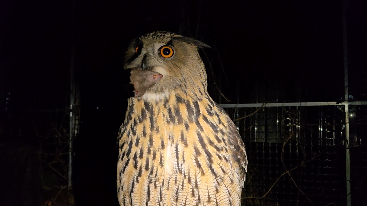 Кошка Морошка надела свой сияющий ошейник и пошла мне помогать разносить всем совам еду.