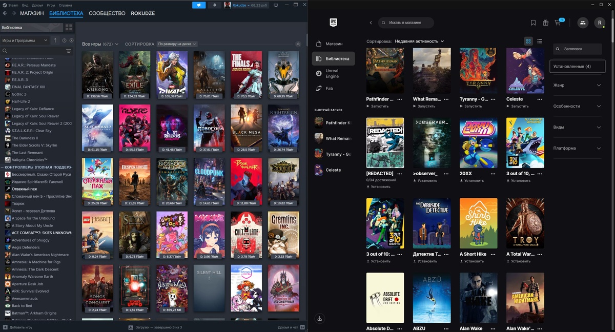 Очень удобно, когда всё у тебя в одном месте. Это такой, я бы сказал, даже консольный опыт. Другое дело, когда приходится прыгать по клиентам, чтобы запустить игру. Вспомнить, что она где-то у тебя куплена, искать в разных на вид и логически интерфейсах. Это утомляет, от этого хочется избавиться. Сейчас в Epic Games Store неплохая скидка на ARC Raiders. Но нет, я лучше подожду такую скидку в Steam — так я не забуду, что у меня игра уже куплена. И она будет в месте, куда мне комфортно и привычно заходить ежедневно.