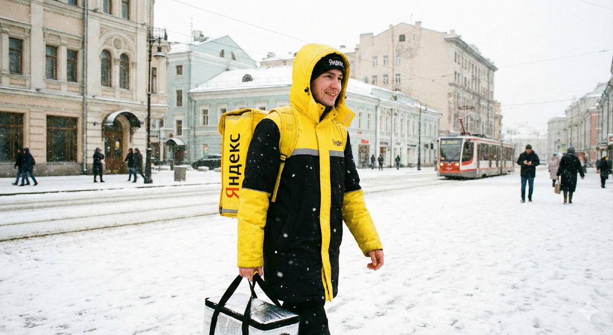 Всем привет! Сегодня у нас интересный эксперимент. Многие задаются вопросом: сколько можно заработать в Яндекс Доставке, если начать работать с чистого листа, на совершенно новом аккаунте? Я решил проверить это на практике. Локация — Москва, район метро Аэропорт. Яндекс обещает здесь заказы от 340 рублей. На улице зима, мороз, но мы не ищем легких путей. Погнали выходить на смену! Вышел на линию, и первый заказ не заставил себя ждать. Две точки, идти вроде бы недалеко — всего 5 минут. Но есть нюанс: погода. На термометре -4°C, но ощущается как все -11°C. Для пешего курьера это серьезное испытание, руки мерзнут моментально, сенсор телефона перестает слушаться, а перчатки не особо спасают. Первый заказ: Пироги на 3500 рублей.