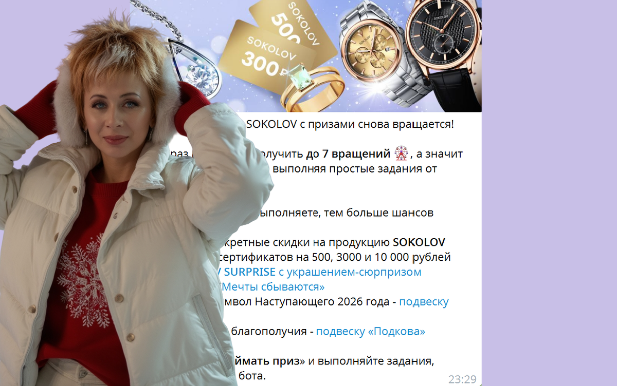 Всем привет. Сегодня быстро рассказываю про интересную акцию с подарками, к Новому году предложений разных интересных много, вот это одно из них. Раздает подарки бренд Sokolov, у них опять начал работать специальный «подарочный» бот, ссылку на него дам внизу. Все предельно просто, выполняете простые задания — получаете крутку барабана, каждая крутка это гарантированный приз. Максимум можно собрать 7 круток и выкрутить, соответственно, 7 призов. Интересного там много. Есть призы по 5000 и 10000 рублей на покупки, есть всякие разные скидки, конечно, есть подвесочки. Вот что пишут представители бренда в том самом боте: Самое интересное в этом вот всем — это бокс-сюрприз с украшением. Там могут быть серьги, подвески, цепочки, браслеты, кольца с универсальным размером и сертификаты на 30 000 рублей. Задания вот такие: Как видите, сложного ничего нет, приложение магазина если уже стоит можно удалить и переустановить. А так — подписки, поделиться телефоном, ничего сверхъестественного, за пода