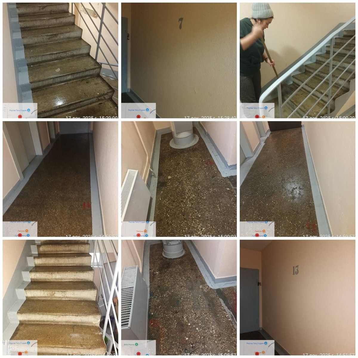 Здравствуйте! По состоянию на 17.12.2025г. выполнена влажная уборка МОП по данному адресу.