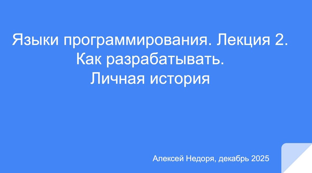 Как разрабатывать. Личная история» 7 декабря 2025 года состоялась вторая лекция из цикла под названием «Языки программирования. Лекция 2. Как разрабатывать. Личная история». Лекцию прочел Алексей Евгеньевич Недоря — уникальный специалист, чей практический опыт создания языков и компиляторов насчитывает десятилетия. Его профессиональный путь включает: ▫️опыт работы над первым компилятором с 1984 года, ▫️cоздание компиляторов для 9 языков программирования, ▫️непосредственное участие в стандартизации языков (Modula-2 ISO/IEC, руководства Oakwood для Oberon-2), ▫️глубокую работу в области системной архитектуры, ▫️разработку 7 собственных языков программирования. Именно этот беспрецедентный опыт лег в основу его видения о разработке языков программирования и компиляторов. Вместо абстрактной теории Алексей Евгеньевич предложил аудитории уникальную «личную историю» — от создания легендарного 32-разрядного компьютера «Кронос» и компиляторов Modula в конце 1980-х до современных принципов про