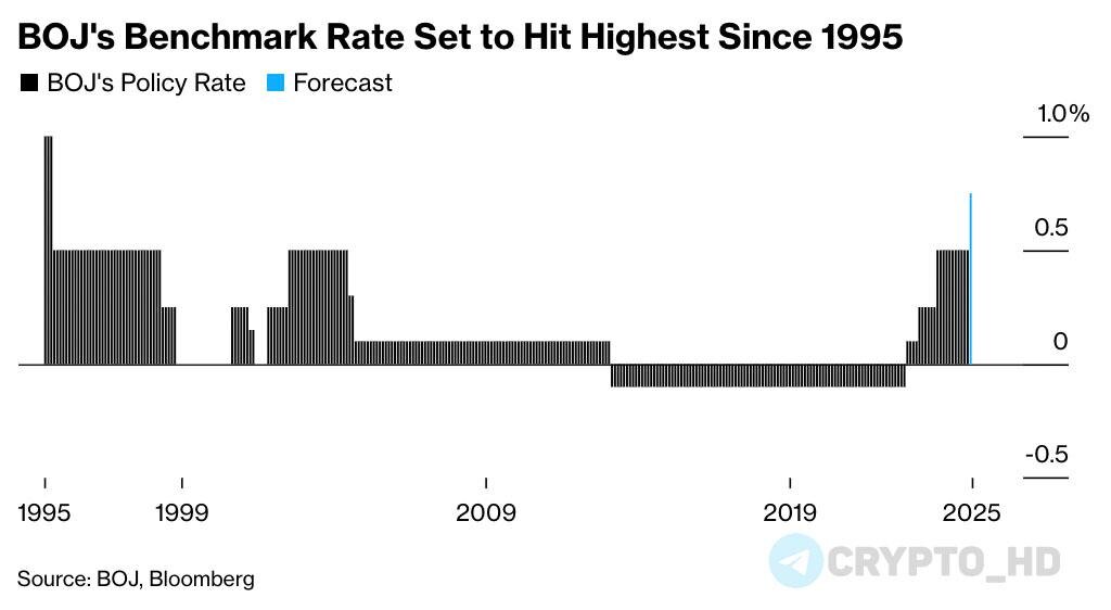 😡 Напоминание: В пятницу ЦБ Японии может повысить процентную ставку до рекордного с 1995 года уровня (до 0,75%).