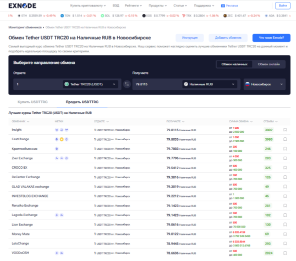 - Используйте мониторинг Exnode для проверки обменников криптовалюты в Новосибирске с актуальными адресами, контактами;