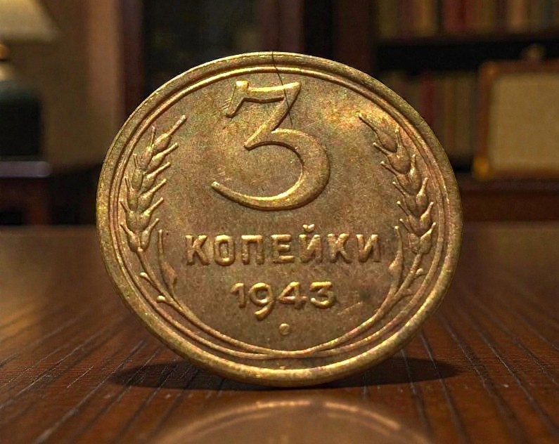 от рядовой до музейной редкости.Сегодня — 3 копейки 1943 года. 3 копейки 1943 года чеканились в самый разгар Великой Отечественной войны, в условиях жёсткой экономии и упрощения производства. Для этого года зафиксированы ровно два варианта, оба различаются исключительно по лицевой стороне. Все различия у 3 копеек 1943 года сводятся к форме звезды над гербом: Реверс у всех экземпляров одинаковый, перепуток по реверсу, дате или металлу не выявлено. Аверс: звезда разрезная Это нормативный, тиражный вариант, характерный для большинства экземпляров 1943 года. Оценка: около 50 ₽ Аверс: штемпель от 20 копеек 1943 года