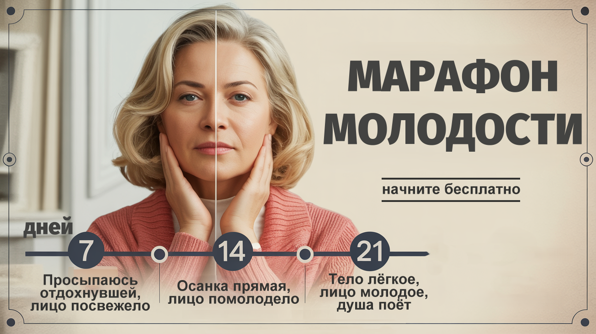 Дорогие мои, поздравляю — вы начали! Это уже поступок. Вы не отложили на потом, не сказали «начну с понедельника». Вы здесь. Значит, готовы к переменам. За 21 день мы с вами пройдём путь от усталости к энергии, от «махнула на себя рукой» к «я себе нравлюсь». Без жёстких диет, без изнурительного спорта, без дорогих процедур. Только простые действия, которые под силу каждой. Через три недели вы изменитесь. Но если не зафиксировать, какой вы были в начале — не заметите разницы. Наш глаз привыкает, и мы не видим собственных перемен. Поэтому сегодня — день честного знакомства с собой. Сделайте два фото: Фото лица — без макияжа, при дневном свете, смотрите прямо в камеру. Можно попросить кого-то сфотографировать или сделать селфи. Фото в полный рост — в облегающей одежде или в том, в чём ходите дома. Встаньте прямо, руки вдоль тела. Эти фото — только для вас. Никому не показывайте. Сохраните в отдельную папку с названием «Марафон молодости — старт». Через 21 день сравните. Вы удивитесь. Отве