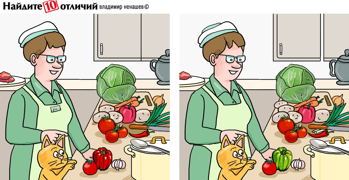 10 отличий про пищу на кухне. Полезный тест на внимание. Улучшает память и аппетит.