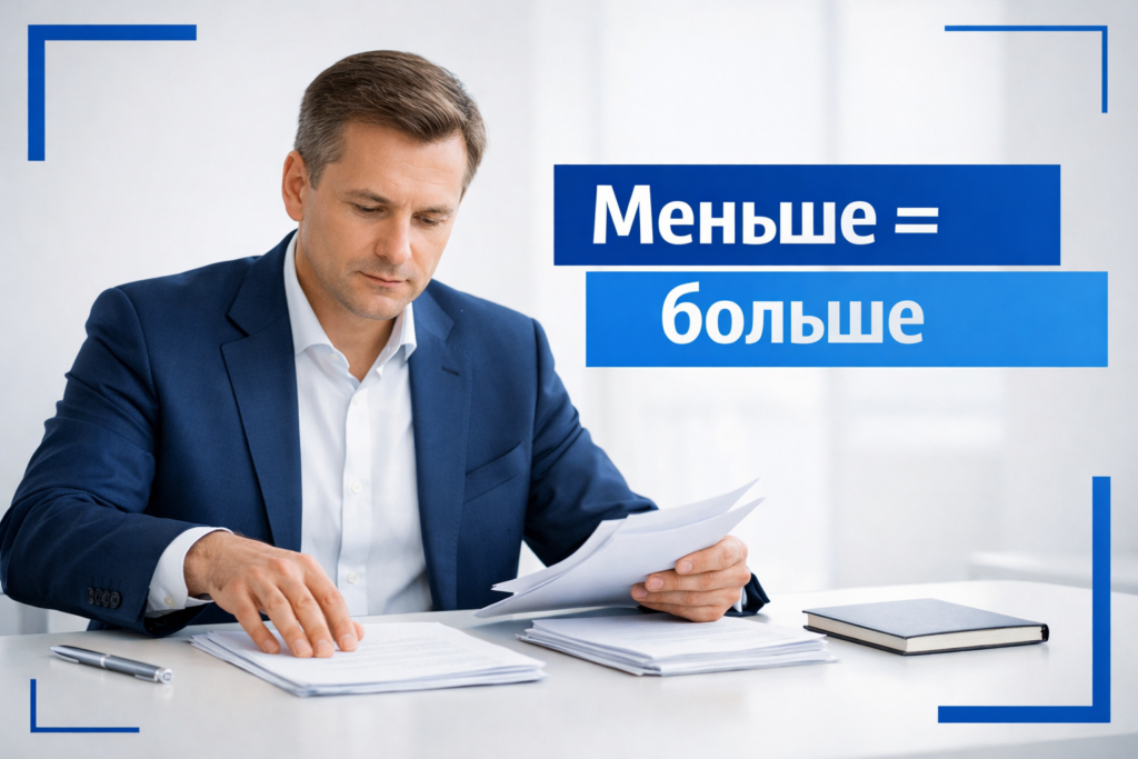 Правильный подход: минимализм — это точность и лаконичность выражения сложных идей, а не их упрощение. Используйте профессиональную лексику, но избегайте канцеляризмов и воды.