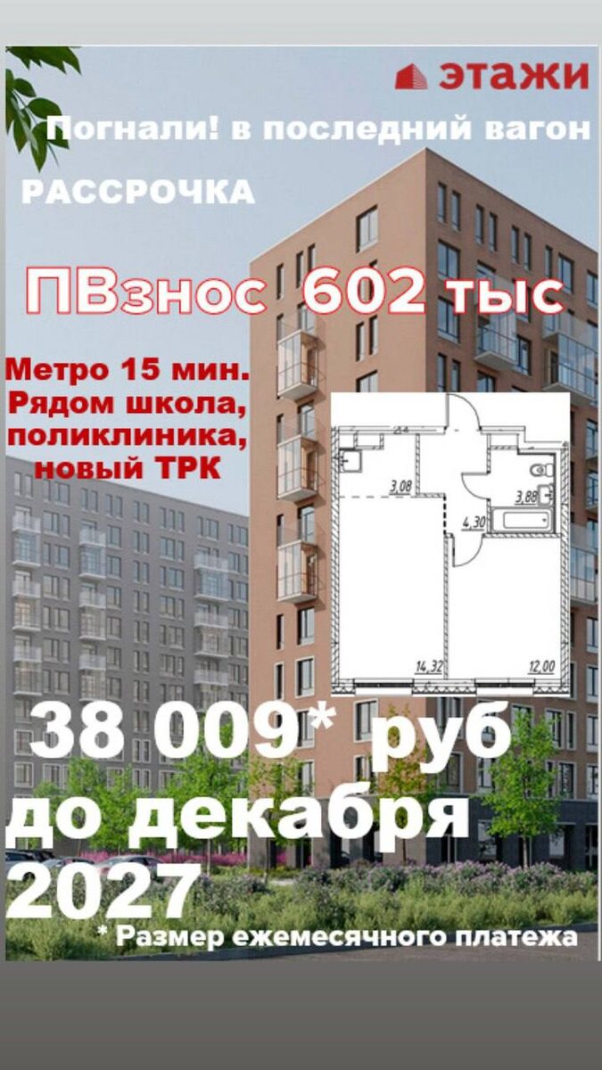 ! Рассрочка с минимальным первоначальным взносом 10%, без удорожания на два года! Ключи через год! Ежемесячный платеж в стоимость объекта, без переплаты по процентам! После завершения рассрочки можно перейти на ипотеку,в том числе с господдержкой!