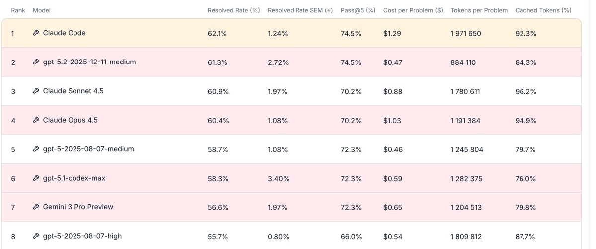 ⚡ Claude Code, GPT-5.2 и DeepSeek V3.2 возглавили рейтинг ИИ-программистов — в разных категориях