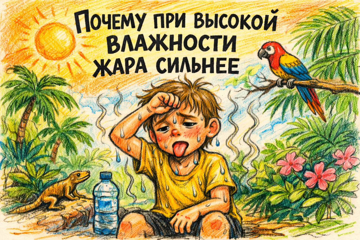 Каждый, кто пережил душный летний день перед грозой или оказался в тропическом климате, хорошо знает это чувство: термометр показывает, казалось бы, не самую страшную температуру — +30°C, но дышать нечем, тело покрывается липким потом, и любое движение даётся с огромным трудом. А в сухой пустыне или сауне при тех же +30°C (а то и +40°C) находиться гораздо комфортнее. В чём секрет? Дело не в температуре самой по себе, а в её коварном партнёре — влажности воздуха, которая буквально «выключает» главную систему охлаждения нашего организма. Это сложная биометеорологическая история о том, как наше тело ведёт безнадёжную борьбу с законами физики.