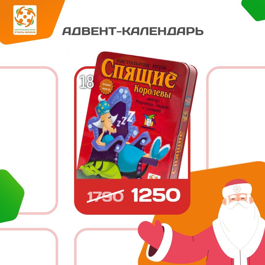 ! Внутри ждёт одна из самых популярных игр нашего издательства — «Спящие королевы Делюкс»! 👑 «Спящие королевы Делюкс» — это увлекательная семейная игра, которая погрузит игроков в сказочное приключение. А ещё она поможет закрепить навыки устного счёта и потренировать память. Отличный способ весело и с пользой провести время! Попробуйте разбудить королев, уснувших под действием волшебных чар! Используйте сообразительность, память и навыки сложения, чтобы прогнать сон с королевского двора. Сыграйте карту рыцаря, чтобы похитить королеву у соперника, или положитесь на ловкость шута. Но будьте осторожны: вас могут усыпить зельем или остановить драконом! В самый нужный момент на помощь придёт волшебная палочка, да-да, в этой игре она есть. Побеждает тот, кто первым разбудит пять королев! 🎁 Прямо сейчас «Спящие королевы. Делюкс» доступны по специальной новогодней цене на Мосигре | Ozon | WB