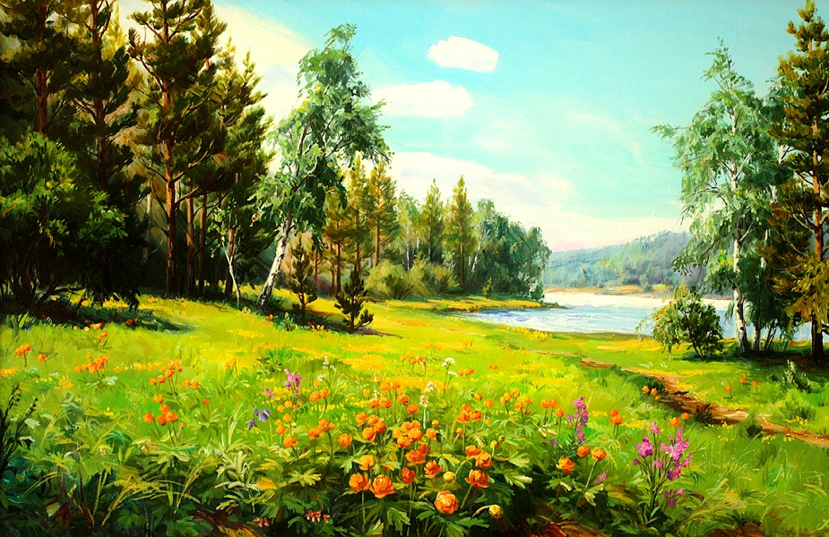 Чувствительная душа Ларисы улавливала малейшее изменение на вечернем небе, а оно менялось с каждой минутой. Казалось, что это было величественное представление, которое специально каждый вечер устраивала природа-матушка, чтобы напомнить людям о своей красоте и о своём могуществе. Цвет неба менялся стремительно. Только что оно было голубым, но очень быстро превратилось в холст, расписанный огненными красками, сменяющими одна другую. Пр этом каждый куст и каждое дерево превращалось в длинный силуэт на фоне пылающего горизонта. Но вот уже исчезли последние яркие отблески, и на небе начинают проявляться первые звёзды, робкие, больше похожие на мерцающие точки, напоминающие, что ещё немного - и наступит летняя ночь.