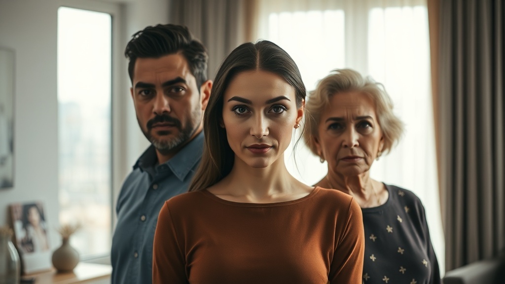 Тишина навалилась мгновенно. Даже часы будто перестали тикать. Кто‑то нервно шмыгнул носом, но никто не решился первым произнести ни слова. В этом застывшем воздухе, между миской с оливье и тарелкой с селёдкой под шубой, я почти физически чувствовала, как поднимается волна — тяжёлая, холодная, семейная война, которая вот‑вот обрушится на всех нас.