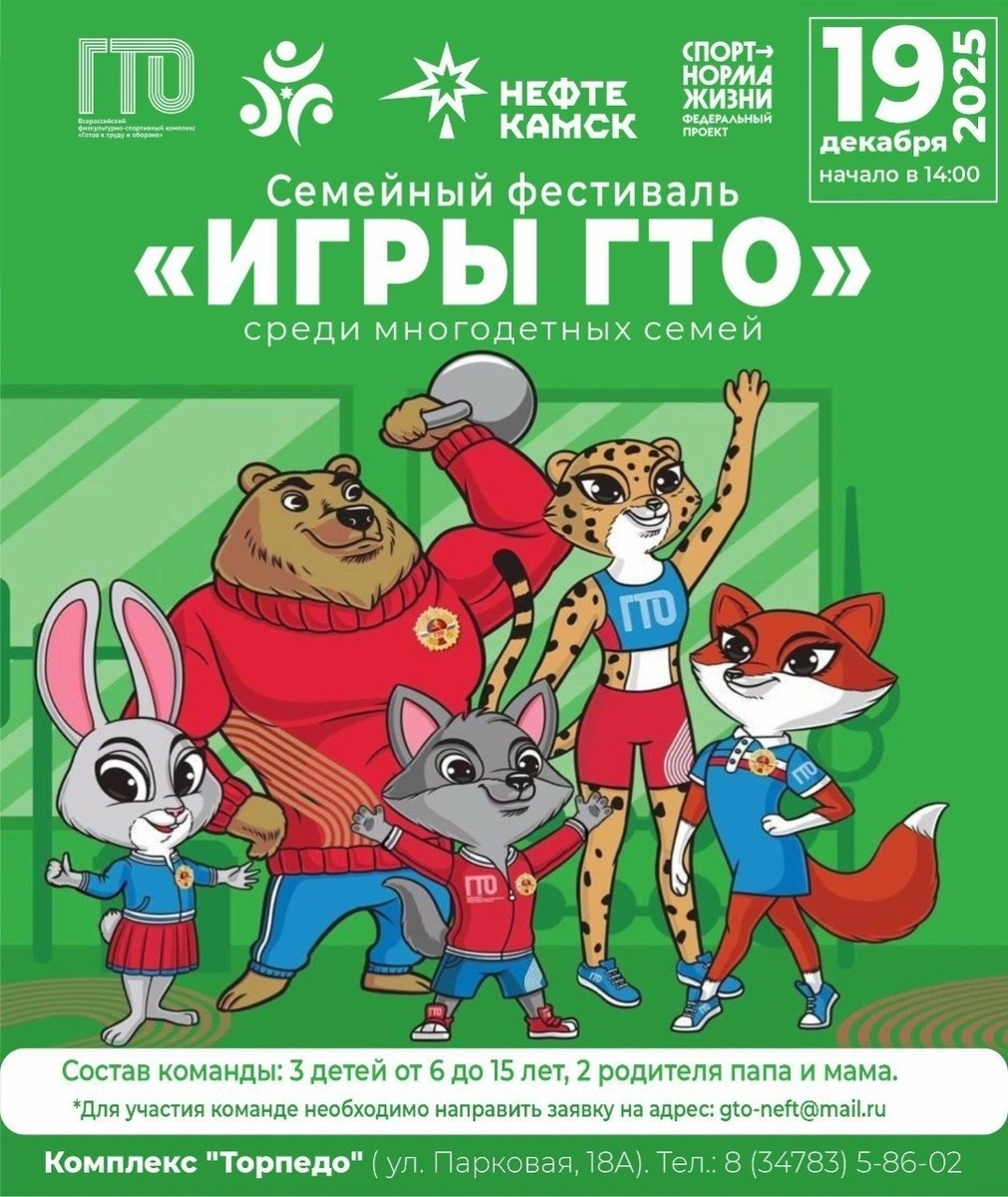 !🎉 21 декабря в Башкортостане отмечают День многодетной семьи. Этот праздник подчеркивает важность семейных ценностей, выражает признательность родителям, воспитывающим детей, и привлекает внимание общества к их нуждам и достижениям. В Нефтекамске в преддверии праздника пройдет фестиваль Всероссийского физкультурно-спортивного комплекса "Готов к труду и обороне". Приглашаем многодетные семьи на спортивный праздник!❤ Участие в фестивале — это возможность проявить командный дух, показать спортивные навыки и зарядиться позитивом. Состав команды: 3 детей и 2 родителя либо законные представители. Рекомендуем единую спортивную форму и атрибуты с названием команды. Приходите на фестиваль за званием самой спортивной и дружной семьи города!👏 #21многодетнойсемьи #спорт #семья 👉 Подписаться на канал