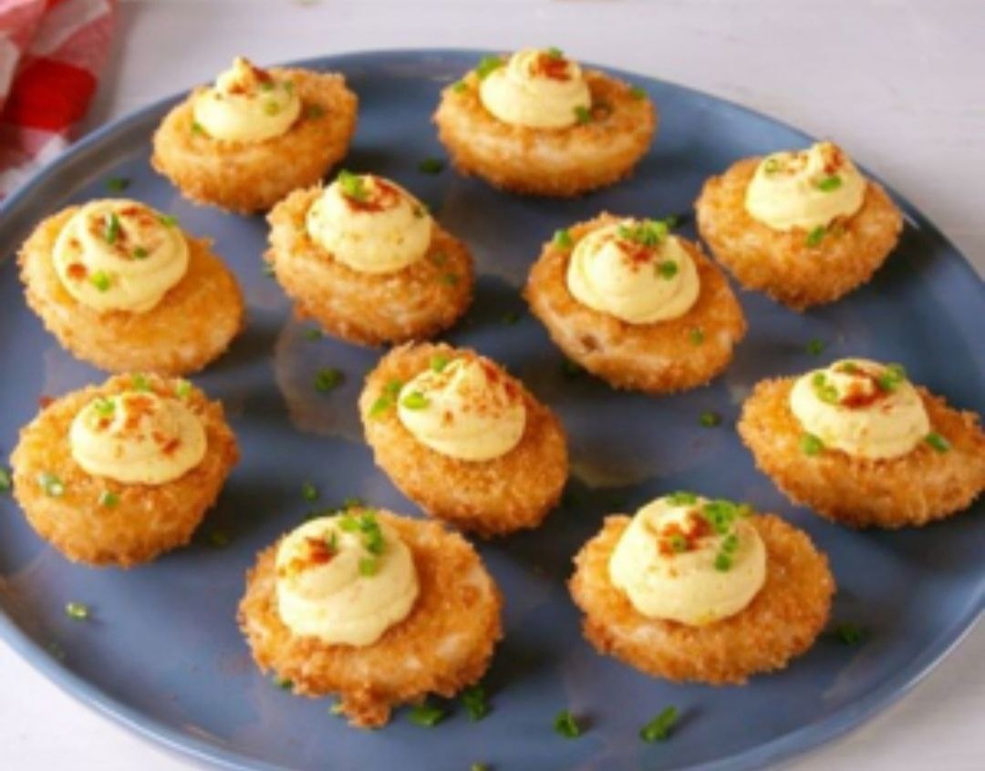 🤩Фаршированные - панированные из духовки? Ответ 🤩Яйца Запечённые фаршированные яйца в панировке: сварить яйца, нафаршировать, обвалять и быстро запечь до румяной корочки. 🤩Яйца – 6 шт., сваренные вкрутую 🤩Майонез или густой йогурт – 2–3 ст. л. 🤩Любой тёртый сыр – 50–70 г 🤩Чеснок (по желанию) – 1 зубчик, через пресс 🤩Соль, перец – по вкусу 🤩Мука – 2–3 ст. л. 🤩Яйцо сырое – 1 шт. (для панировки) 🤩Панировочные сухари – 4–5 ст. л. 1. Отварить яйца вкрутую, остудить, очистить, разрезать пополам и аккуратно вынуть желтки. 2. Растереть желтки с майонезом/йогуртом, сыром, чесноком, солью и перцем до пасты и наполнить ею половинки белков. 3. Подготовить три миски: с мукой, взбитым сырым яйцом и панировочными сухарями; каждую фаршированную половинку быстро обвалять сначала в муке, затем во взбитом яйце, затем в сухарях. 4. Выложить яйца на противень с пергаментом, можно слегка сбрызнуть маслом, и запекать при 190–200 °C около 8–10 минут до золотистой корочки. Начинка «праздничный ур