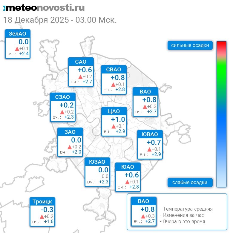 В 3:00 в Москве было от -0.9°C до +1.6°C, средняя температура +0.5°C #погода #Москва #зима #температура #18декабря #четверг