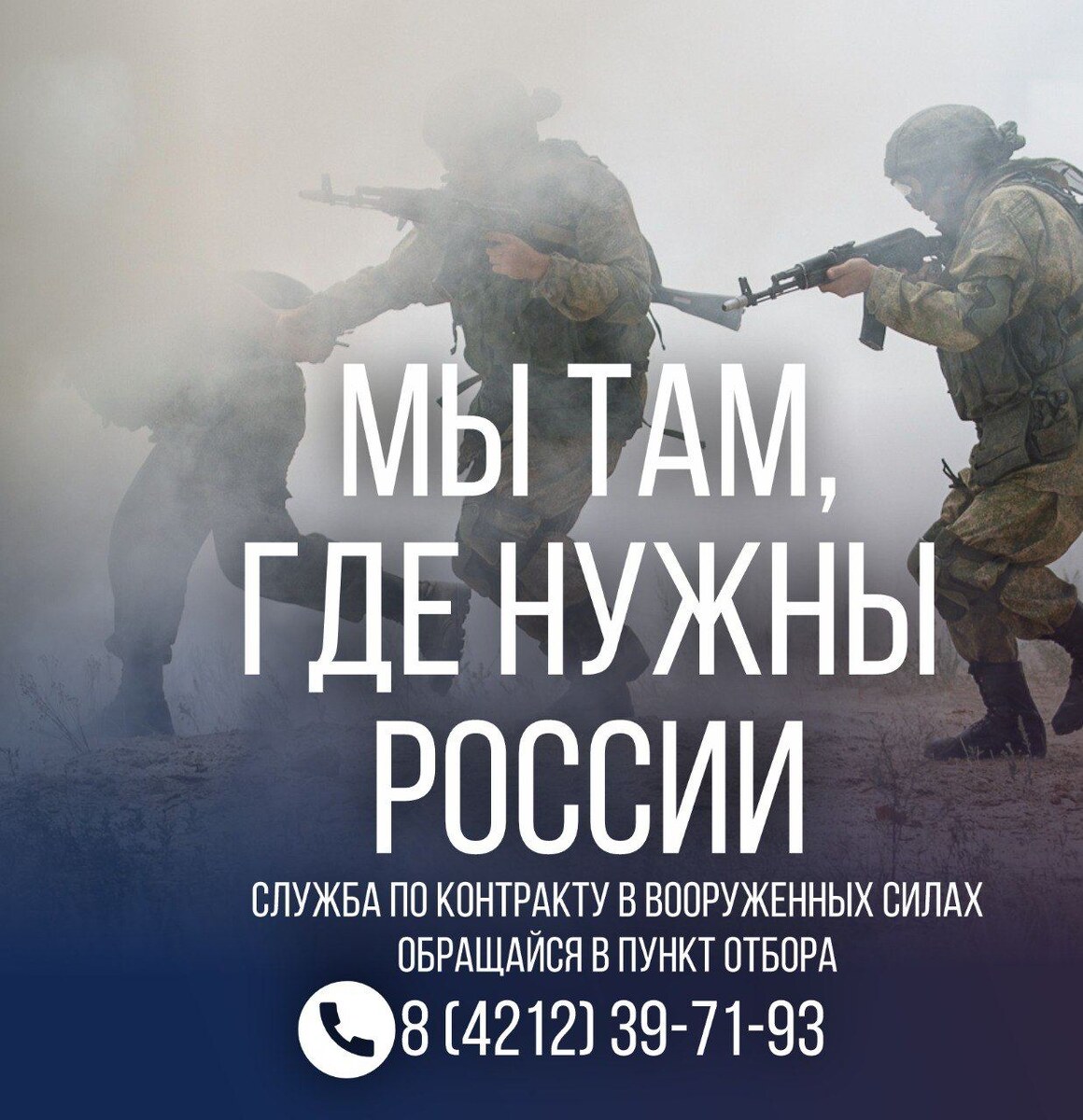‼️‼️‼️‼️‼️ Министерство обороны Российской Федерации проводит отбор граждан в возрасте от 18 лет для поступления на военную службу по контракту. Контрактная служба в Хабаровском крае - это: ✔️единовременная выплата 1 600 000 рублей; ✔️ зарплата ежемесячно от 204 000 рублей; ✔️ премии от 1 000 000 рублей; ✔️ кредитные и налоговые каникулы; ✔️ бюджетные места для обучения детей в ВУЗах; ✔️ за будущими контрактниками бронируются рабочие места; ✔️ бесплатный отдых детей в летних и оздоровительных лагерях; ✔️ бесплатное питание детям в школе. ‼️За дополнительной информацией можно обратиться: 🔻 телефоны «горячей линии»: 📞 8 (4212) 41-95-09 📞 8 (4212) 41-95-39 📞 8 (924) 221-60-47 📞 8 (929) 410-70-72 🔻 пункт отбора города Хабаровска: ✔️ 680028, ул. Серышева, д. 3 📞 8 (4212) 39-71-93 🔻 военный комиссариат: ✔️ 680033, ул. Зои Космодемьянской, д. 26 📞 8 (4212) 42-97-35 📞 8 (4212) 56-74-98 Подписывайтесь на наш канал в MAX рубрика #контрактная_служба