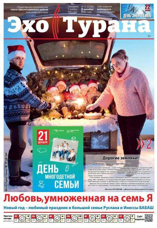 ! Уже завтра выходит очередной номер газеты «Эхо Турана» Читайте в свежем выпуске: СОБЫТИЕ НЕДЕЛИ – в Краснотуранске состоялось торжественное закрытие Года защитника Отечества НАШИ ЛЮДИ – представляем депутатов окружного Совета: интервью с Еленой СТАРАКОНЬ ИСТОРИЯ В ЛИЦАХ – Ольге БУЛДАКОВОЙ подвластно наследие времён. Уникальный репортаж о родословной нашей землячки, а также история школьного музея в Лебяжьем. ГОРОД ПРОТИВ ДЕРЕВНИ – где лучше строить карьеру? Размышления школьников о выборе жизненного пути по-взрослому ПОРТРЕТ ХУДОЖНИКА – как Валентина АКСЁНОВА совмещает воспитательную работу с серьёзным увлечением живописью ПОД ЗВУКИ БАЯНА – Павел ЕСИПЕНКО вырос в творческой среде, где музыка звучала постоянно СПОРТ – открытие нового лыжного сезона началось с побед наших спортсменов А ТАКЖЕ – главные новости уходящей недели, реклама, объявления, полезная информация и многое другое Спрашивайте газету в ближайших торговых точках 🌐 Сайт | 📱 Тelegram | 📱 ВК | 📱 ОК |💙RUTUBE