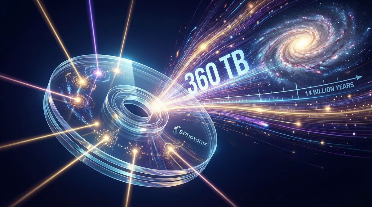 Британская компания SPhotonix объявила о выходе технологии 5D Memory Crystal на уровень производственной готовности. В течение ближайших двух лет планируется пилотное внедрение систем холодного хранения данных на базе этой технологии в дата-центрах. Один 5-дюймовый стеклянный диск способен вместить до 360 терабайт информации со сроком хранения 13,8 миллиарда лет — примерно равным возрасту Вселенной.