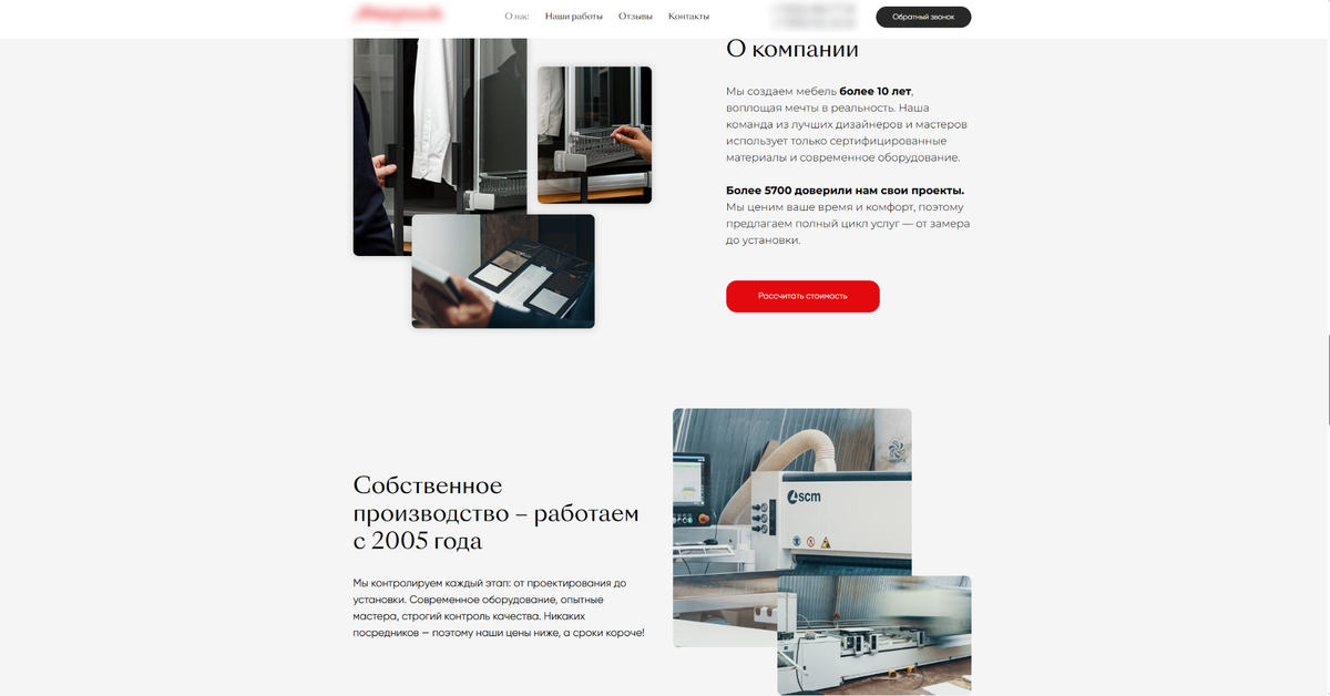 Наш клиент - крупная российская сеть салонов мебели. География запуска - Санкт-Петербург. Целевой продукт - шкафы на заказ. Средний чек - 220 000 руб. Период представленных результатов: 1 полноценный месяц (с середины октября по середину ноября). Клиент — зрелый, системный игрок на рынке с узнаваемым именем и отлаженными бизнес-процессами. У него уже было: Протестировать нас, как нового подрядчика, для взрывного роста по конкретному продукту — шкафам. Мы доказали ликвидность нашего канала, и клиент принял решение о значительном увеличении бюджета именно с нами. 1. Разработать новый высококонверсионный сайт под продукт «Шкафы», сфокусированный на генерацию заявок. 2. Настроить и запустить эффективные рекламные кампании в Яндекс.Директе (РСЯ и Мастер кампании) для целевого привлечения аудитории. Изначально клиент получал высокий % нецелевых заявок, норма должна была быть ниже. Проблема была в форме обратной связи (квизе), где единственным действием было «Рассчитать стоимость». Люди ост