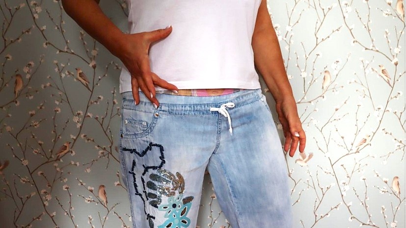 Одно время почти все носили джинсы с заниженной талией. Но такая мода продержалась недолго. Со временем стало понятно, что низкая талия не всегда удобна и подходит далеко не всем. Постоянно приходится поправлять одежду, думать о том, как сесть или наклониться, чтобы ничего лишнего не было видно. Сейчас мода сильно изменилась. В основном носят джинсы и шорты с завышенной талией. И это неудивительно. Такая посадка намного удобнее: она хорошо держится, подчеркивает фигуру, визуально удлиняет ноги. К тому же высокая талия подходит людям с разным типом фигуры и легко сочетается с футболками, рубашками и короткими топами. Вот и я решила переделать свои старые джинсы. Они свободные, удобные, тонкие, на широкой резинке, но длина и посадка уже не совсем устраивали. Решила дать этим джинсам вторую жизнь и сделать из них шорты с завышенной талией. Сначала отпорола резинку. Затем отрезала лишнюю длину штанин. Отрезанную часть использовала для подъема талии. Отмерила 20 сантиметров ткани и добавил