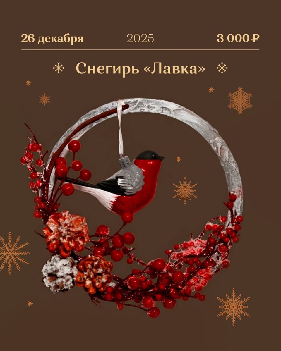 #МК С 28 декабря по 10 января вы можете посетить любой мастер-класс — даже если вы не бронировали гостевой домик По итогам каждого мастер-класса вы унесёте с собой изделие, созданное своими руками, и тёплые впечатления от времени, проведённого с пользой и удовольствием. Снегирь «Лавка» 26 декабря | 3000 руб. Новогодняя композиция из нобилиса «Joy» 28 декабря | 3800 руб. Композиция на стол со свечой «Лавка» 2 января | 3000 руб. Композиция новогодняя в гипсе «Лавка» 3 января | 3000 руб. Сапог новогодний, ваза «Лавка» 9 января | 3000 руб. Шкатулка с символом года «Лавка» 10 января | 3000 руб. Подробнее: @naraadavillage | @naraada.village Online Якутия | Ждем вас в МАХ