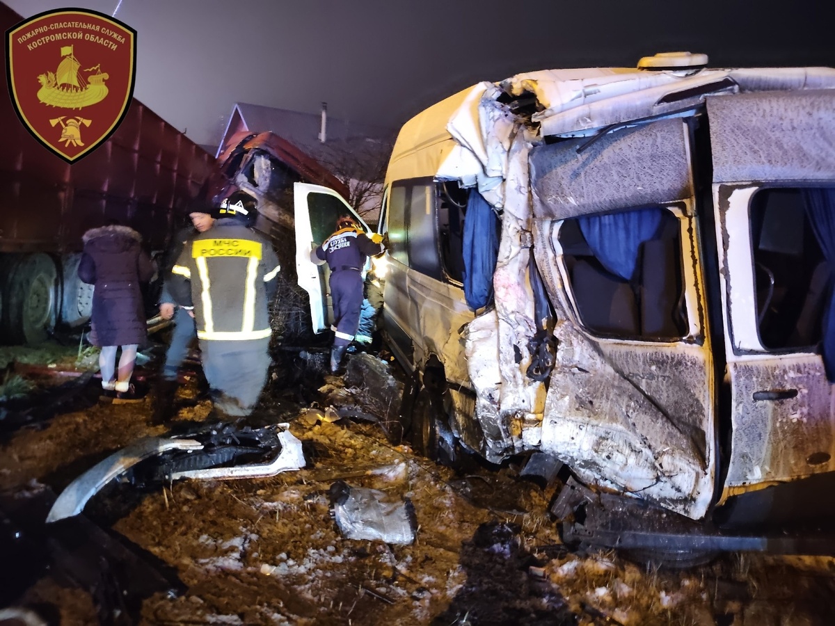 Несколько пассажиров маршрутки пострадали во время аварии с фурой на костромской трассе