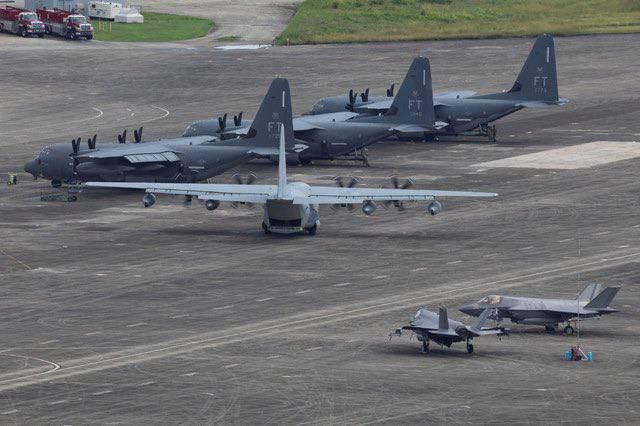 📷❗️Три американских поисково-спасательных самолета большой дальности HC-130 ВВС США и самолет-заправщик KC-130 Корпуса морской пехоты стоят на взлетно-посадочной полосе военно-морской базы Рузвельт-Роудс на востоке Пуэрто-Рико в среду, 17 декабря, рядом с несколькими истребителями F-35B Lightning II и штурмовиками AV-8B Harrier II Корпуса морской пехоты.