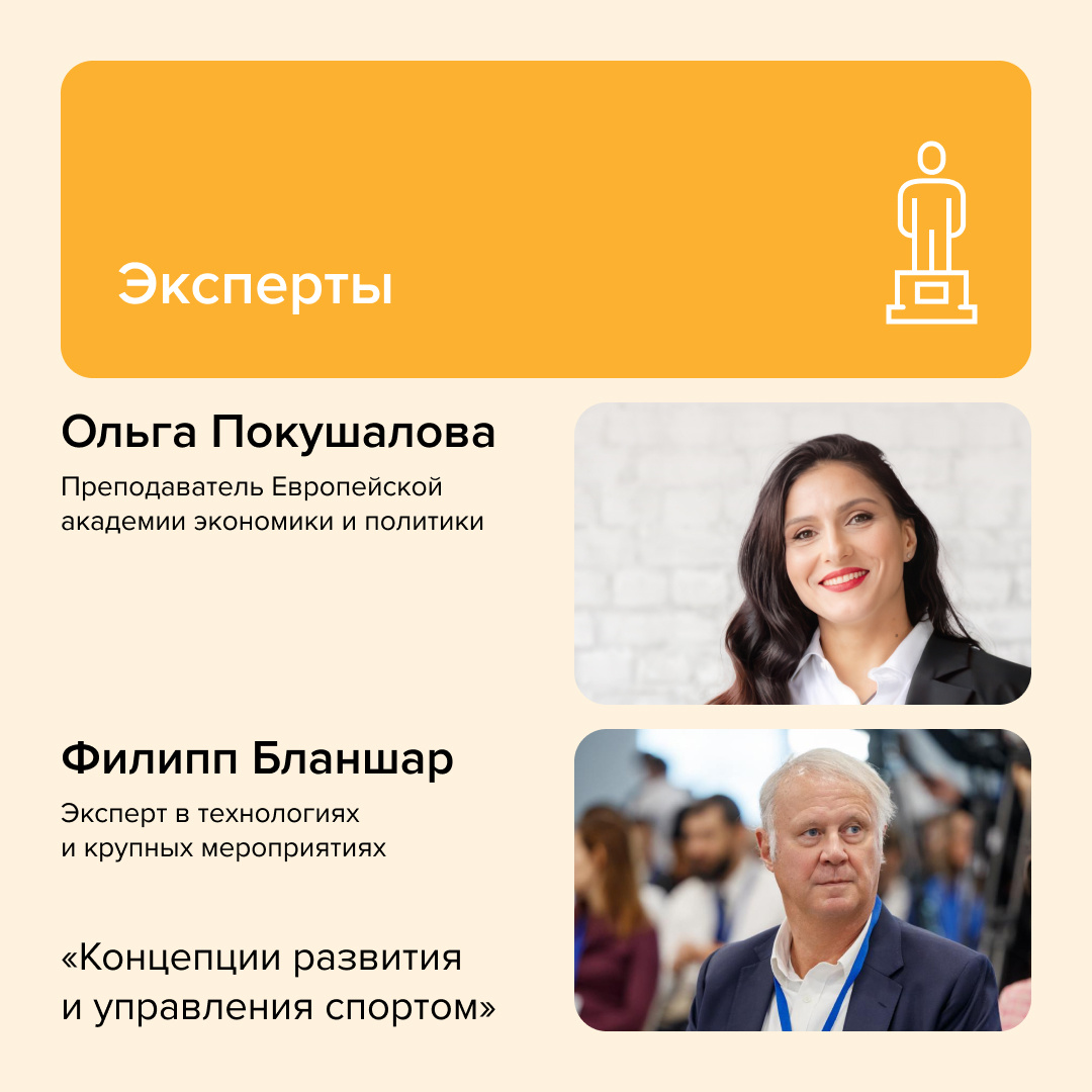 Чем масштабнее спортивный проект, тем меньше в нем импровизации. Олимпиады, мега-события и крупные турниры строятся как сложные системы, где все связано со всем. Именно с этого ракурса спорт разбирают в юните «Концепции развития и управления спортом» в РМОУ. В основе — опыт людей, которые участвовали в создании таких систем. • Филипп Бланшар много лет участвует в создании решений для Олимпийских игр, международных выставок и крупных спортивных проектов. Он сотрудничал с МОК, участвовал в разработке стратегии Expo 2020 в Дубае, был старшим советником министра ОАЭ и основал движение Futurous — «Игры будущего», где спорт соединяется с наукой, образованием и технологиями. • Ольга Покушалова — лектор Европейской академии экономики и политики и приглашенный преподаватель РМОУ. Управляющий партнер Futurous, аналитического центра и консалтинговой компании, работает с оргкомитетами, государственными структурами, университетами и организаторами спортивно-образовательных проектов. На юните студе