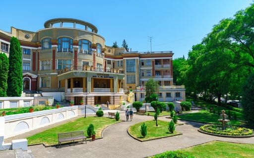 Санаторий им. Кирова ведет свою историю с 1936 года. Его архитектурные признаны памятниками федерального значения и хранят атмосферу советской курортной классики. Это место не про модный SPA-глянец, а про стабильную лечебную базу, размеренные прогулки по курортному парку и спокойный отдых.