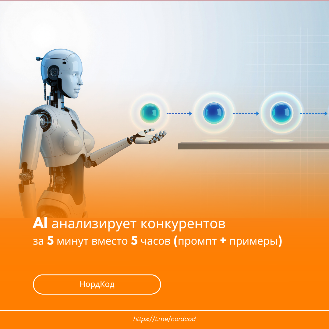 Ответ: пока один человек часами собирает сайты, прайсы, контент и отзывы, другой за те же 5–10 минут прогоняет через AI структурированный запрос (промпт), получает готовый скелет анализа и тратит время не на сбор данных, а на принятие решений.