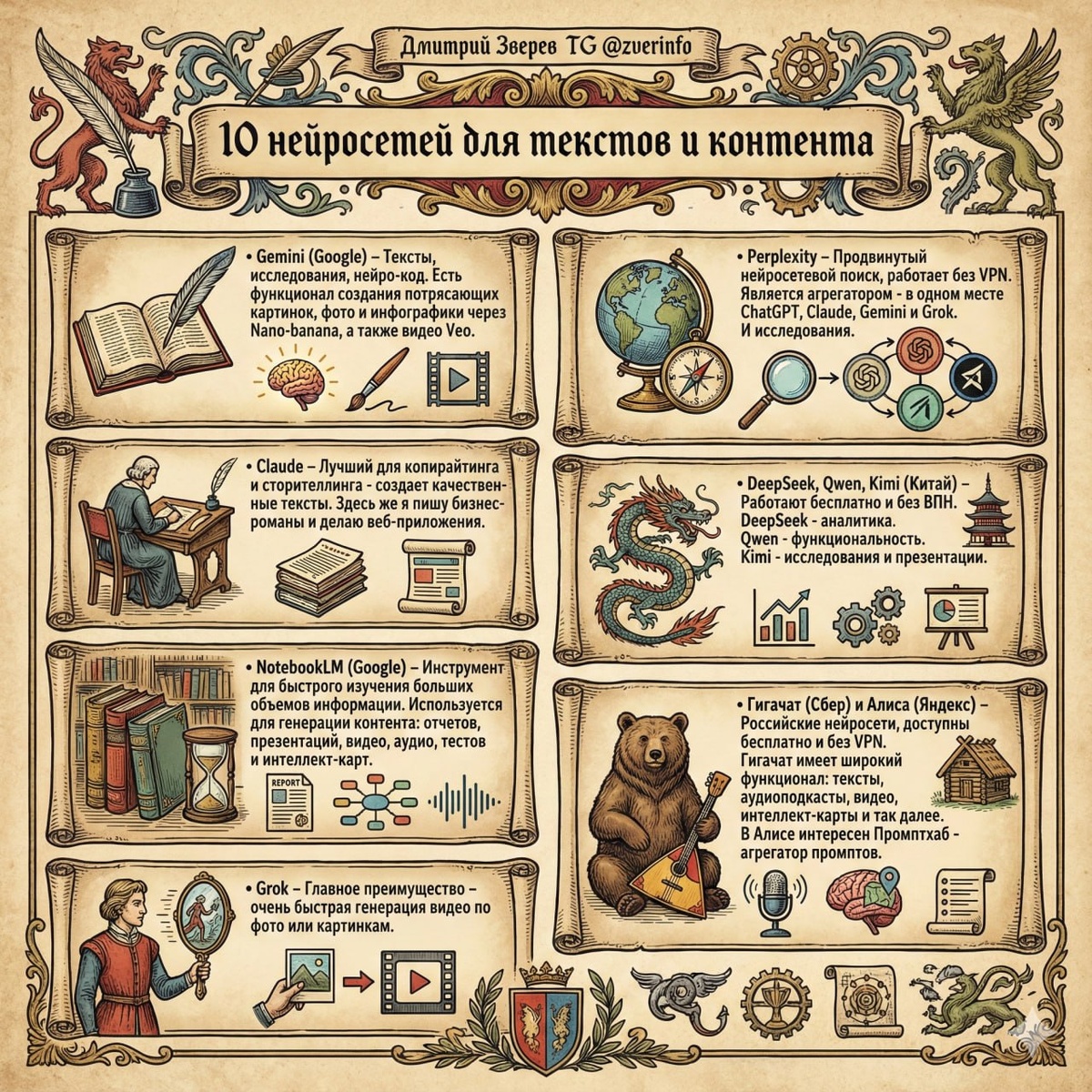 Подборка - 10 нейросетей для текстов и контента [4 стиля инфографики выше, включая "секретный отчет"]