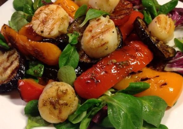Теплый салат с морскими гребешками, баклажанами и перцем — это гармония вкуса и пользы. Гребешки невероятно богаты белком и микроэлементами, а овощи придают блюду свежесть, легкость и яркие краски. Такой салат легко готовится, а результат всегда выглядит ресторанно. Его можно подать как основное блюдо или как необычную закуску.