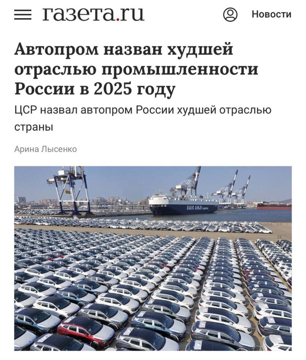 ❗️❗️❗️❗️ Российский автопром признали ХУДШЕЙ отраслью промышленности в 2025 году😐 Уже видели эту статистику? По данным аналитиков, рынок переживает не временный спад, а глубокий структурный кризис. За январь-октябрь выпуск автотехники рухнул на 22%, а в одном только октябре — почти на 40%, что стало антирекордом среди всех отраслей. Производство легковушек снизилось почти на 10%, продажи — на 18%. Ну что ж, где-то прибыло, где-то убыло 🤷♂ Привезем вам хороший авто по отличной цене из Азии, обращайтесь в NOHARA AUTO ❗ ОСТАВИТЬ ЗАЯВКУ НА РАСЧЕТ И ПОДБОР АВТО В TELEGRAM❗ 📌 +7(951)010-52-52 📌 Сайт 📌 ВКонтакте 📌 WhatsApp (если ссылка не работает, используйте VPN, либо напишите нашему менеджеру в Telegram)