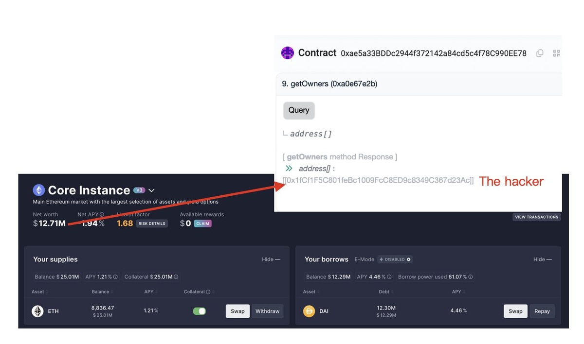 . ΠΠ½ ΡΠ°ΠΊΠΆΠ΅ ΠΊΠΎΠ½ΡΡΠΎΠ»ΠΈΡΡΠ΅Ρ ΠΌΡΠ»ΡΡΠΈΠΏΠΎΠ΄ΠΏΠΈΡΡ ΠΆΠ΅ΡΡΠ²Ρ, ΠΊΠΎΡΠΎΡΠ°Ρ ΠΏΠΎΠ΄Π΄Π΅ΡΠΆΠΈΠ²Π°Π΅Ρ Π΄Π»ΠΈΠ½Π½ΡΡ ΠΏΠΎΠ·ΠΈΡΠΈΡ Ρ ΠΊΡΠ΅Π΄ΠΈΡΠ½ΡΠΌ ΠΏΠ»Π΅ΡΠΎΠΌ Π½Π° Aave (25 ΠΌΠ»Π½ ETH ΠΏΡΠ΅Π΄ΠΎΡΡΠ°Π²Π»Π΅Π½ΠΎ ΠΏΡΠΎΡΠΈΠ² 12,3 ΠΌΠ»Π½ DAI).