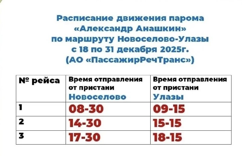 Изменилось расписание движения парома Новосёлово-Улазы.
