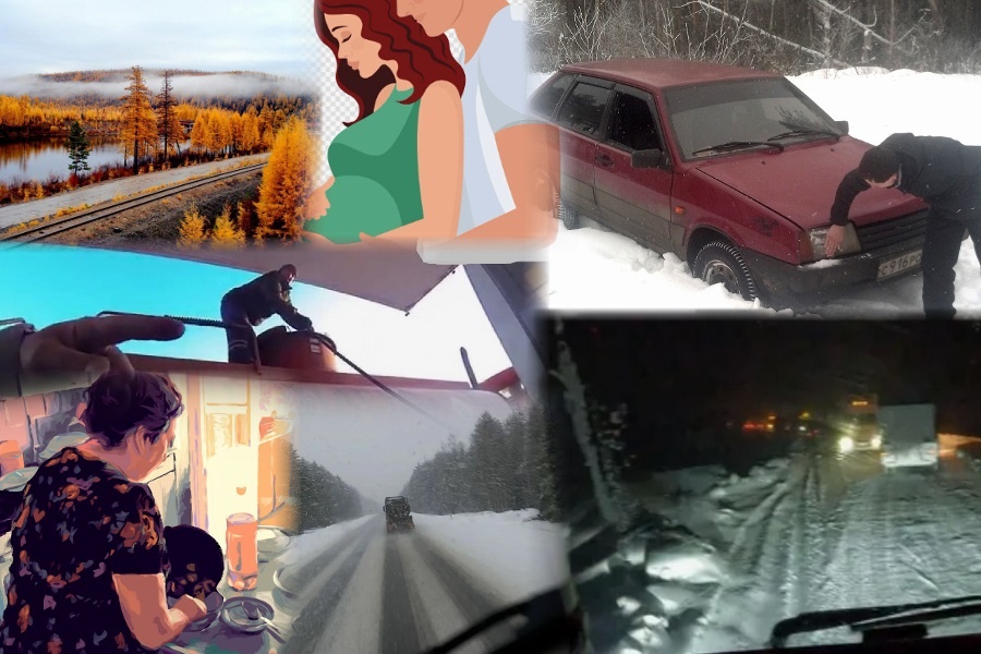 Проснулся от короткого сигнала «воздушка» МАЗ с контейнерами мимо проехал. На часы взглянул, надо же проспал! Час, как уже площадка работает. Оформился, заехал, вот что значит проспать, пришлось ждать пока грузчики освободятся. Но зато грузили быстро, так что ещё до обеда я уже выскочил со Сковородино. Через час с первые, редкие снежинки полетели. До Тынды дошёл, дорога ещё чистая, снег просто пугает, а вот как там дальше не известно, хотя встречные машины пока чистые шли, снега на них не видно.