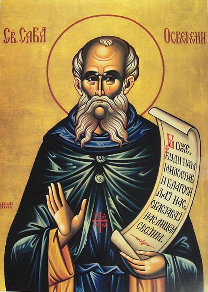 Преподобный Савва Освященный появился на свет в V столетии в Каппадокии, в семье благочестивых христиан. С юных лет он проявил тягу к духовному образованию и в восьмилетнем возрасте стал воспитанником монастыря святой Флавианы, где быстро освоил грамоту и глубоко полюбил Священное Писание. Несмотря на уговоры родителей вернуться к мирской жизни, в 17 лет юноша принял монашеский постриг, полностью посвятив себя служению Богу. В течение десяти лет Савва прожил в монастыре, проводя дни в строгом посте и усердных молитвах. За свое благочестие он удостоился дара чудотворения. Позже инок отправился в Иерусалим и поселился в обители со строгим уставом, а затем на пять лет ушел в затвор, проведя их в пещере. Его духовным наставником был преподобный Евфимий, который помогал Савве возрастать в добродетелях. Со временем вокруг подвижника стали собираться ученики, что положило начало Великой Лавре. По молитвам святого происходили многочисленные чудеса: среди обители забил источник, исцелялись бо