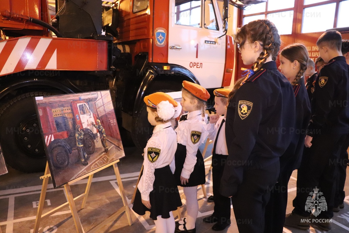 В 1 пожарно-спасательной части города Орла состоялось торжественное открытие тематической выставки «МЧС России – на холстах орловских художников», приуроченной к 35-летию ведомства. Это событие стало частью проекта к юбилею министерства. Необычная инициатива стала возможной благодаря сотрудничеству Главного управления МЧС России по Орловской области и Орловского художественного училища. К созданию работ привлекли студентов этого учебного заведения. Чтобы их написать в 1 пожарно-спасательной части несколько раз проходили пленэры, где юные художники делали зарисовки. Они стали уникальной возможностью для творческого осмысления мужественной профессии пожарного. Огонь – стихия разрушительная, и люди, которые с ней борются, достойны восхищения и увековечивания на холсте. В церемонии открытия приняли участие личный состав Главного управления МЧС России по Орловской области, автору работ – студентки художественного училища, кадетский отряд «Орлята» детского сада № 1 города Орла и дружина юны